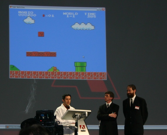 Nun geht es weiter in den Development Bereich, als erstes wird Flacc gezeigt, mit welchem C++ Code in Actionscript konvertiert wird (dazu habe ich dann noch einen Blog Eintrag von einer Flacc Session). Gezeigt wurde das Abspielen von Ogg Vorbis encodierter Musik, OpenSSL im Flash, PDF Anzeige in Flash (natürlich ohne lokal den Reader installiert zu haben), Foto RAW Anzeige sowie Quake und Super Mario.
